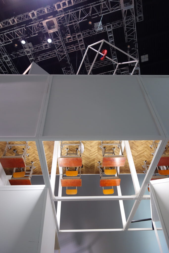 立方体のフレームを基準にして、同じ縮尺でいろんな展示がありました。