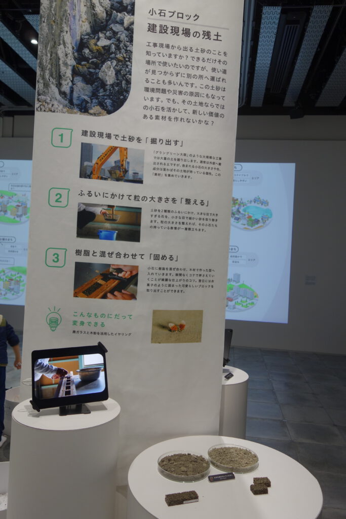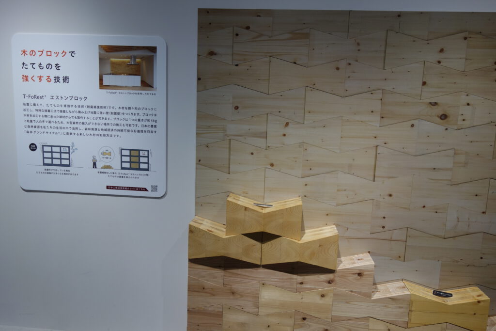 次のエリアは建材の展示エリア。