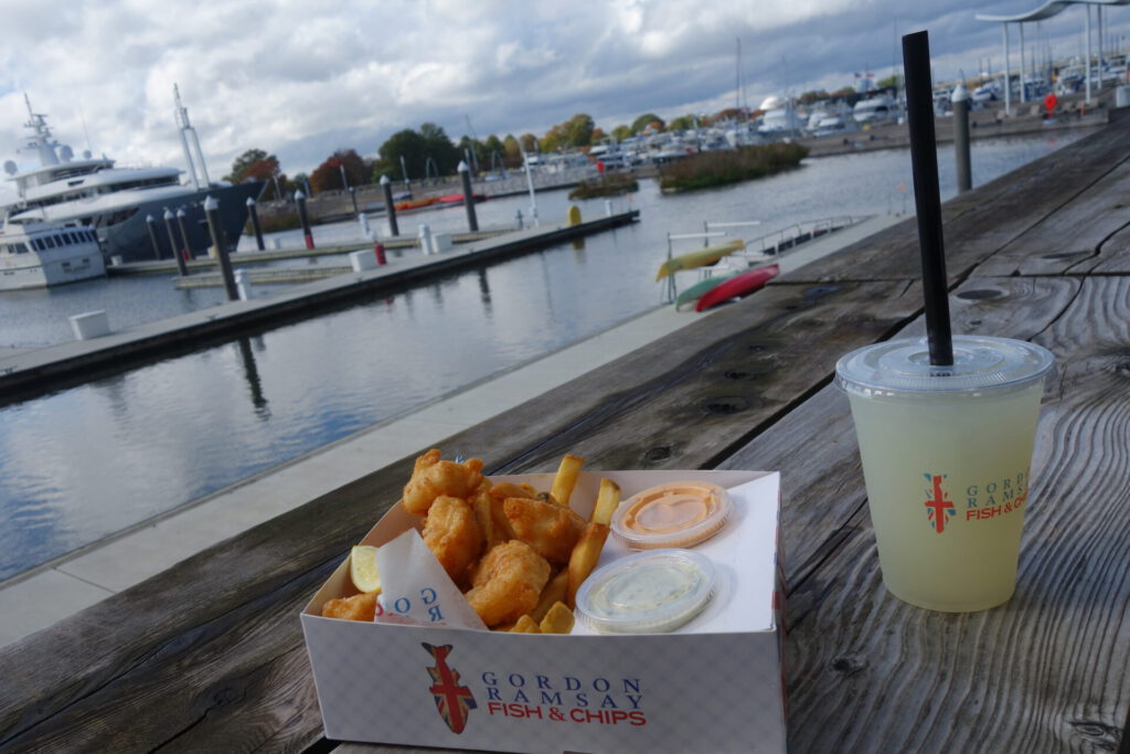 昼食はフィッシュ&チップス@米国
