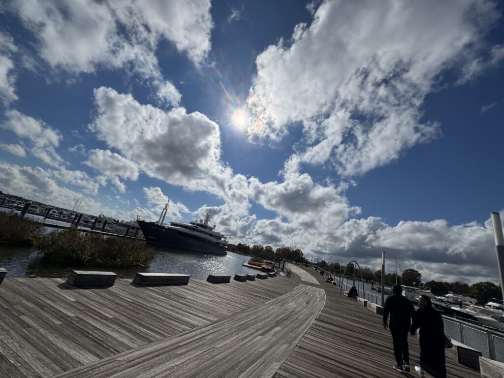 波止場に止まってるボートもおしゃれだし気候もいいしですごくリフレッシュですね。